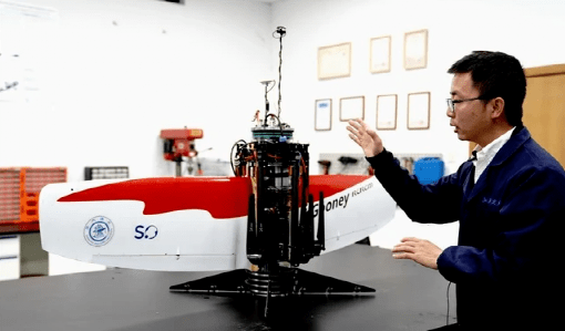 “哪吒”由上海大学海洋学院海洋技术团队成功开发,是将水下滑翔机的设计理念与无人机的设计思想进行了有机融合,具备垂直起降与悬停、水平飞行、水下滑翔等多种功能于一体,技术获得国家发明专利,相关研究成果曾发表在国际权威期刊《海洋工程》上。2020年,“哪吒”已具备50米级水下航行能力、5公斤装以及良好的空中运动能力和跨岛能力。