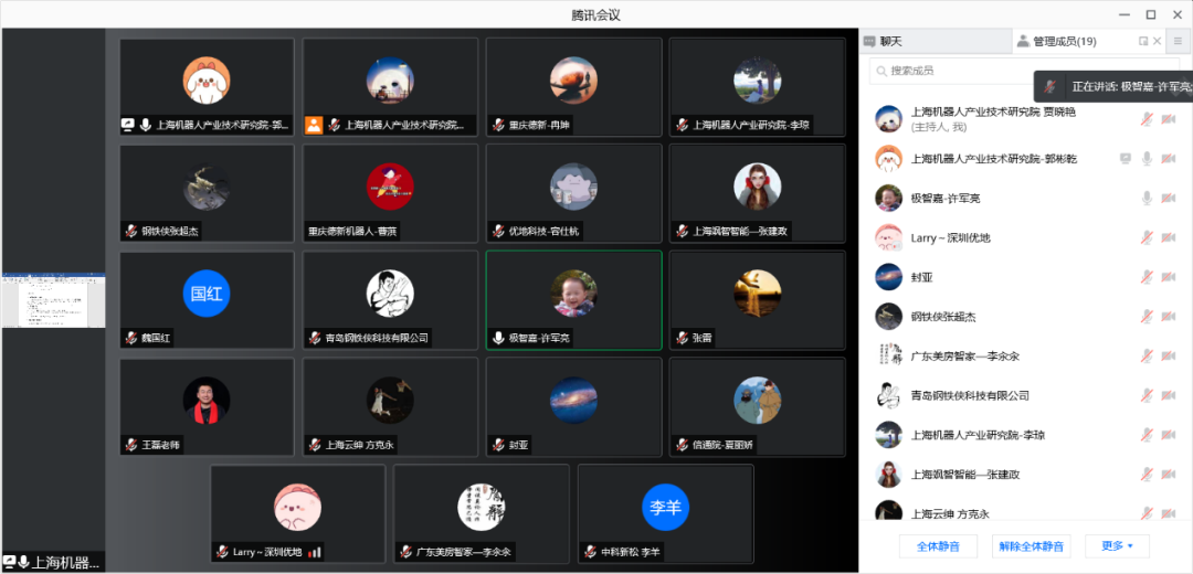 本次标准会议参会单位有:北京钢铁侠科技有限公司、青岛钢铁侠科技有限公司、上海飒智智能科技有限公司、广东美房智高机器人有限公司、大连瑞翔机电设备有限公司、上海云绅智能科技有限公司、深圳优地科技有限公司、北京极智嘉科技股份有限公司、中国信息通信酷游九州、中科新松有限公司、北京京东乾石科技有限公司、塞伯睿机器人技术(长沙)有限公司、安徽宇锋智能科技有限公司、上海析冠信息科技有限公司、重庆德新机器人检测中心有限公司等。