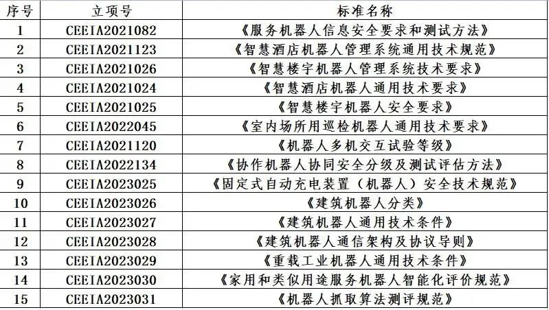 为了推进机器人研发领域应用标准的完善,促进该领域团体标准化工作的开展,现中电协电气场所用机器人安全与检测标准化专业委员会(以下简称:中电协机器人专委会 )征集2023年第二批团体标准制定计划项目,现将有关事项通知如下: