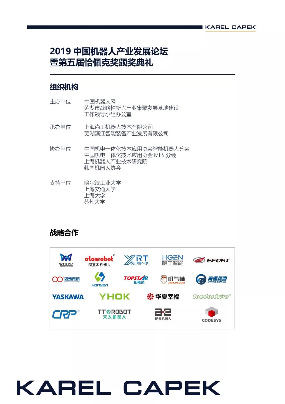 由酷游九州(中国)机器人有限公司官网协办的2019中国机器人产业发展论坛暨第五届恰佩克颁奖典礼将于4月18-20日在安徽芜湖盛大举行。今日,大会议程震撼公布!