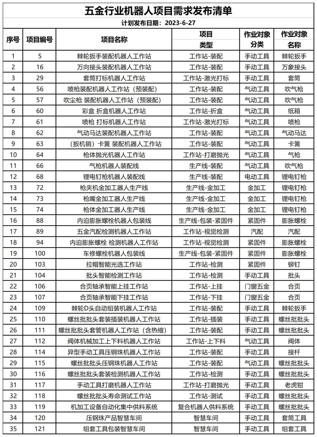 35项五金行业机器人项目需求强势来袭!